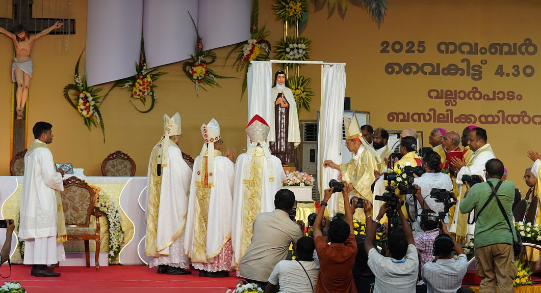 കൊച്ചി: നേരിട്ടും ഓണ്ലൈനായും പങ്കെടുത്ത ആയിരങ്ങളെ സാക്ഷിയാക്കി പ്രാര്ത്ഥനാനിര്ഭരമായ അന്തരീക്ഷത്തില് മദര് ഏലീശ്വയെ വാഴ്ത്തപ്പെട്ടവളായി പ്രഖ്യാപിച്ചു. വരാപ്പുഴ അതിരൂപതയിലെ വല്ലാർപാടത്തെ ദേശീയ മരിയൻ തീര്ത്ഥാടന കേന്ദ്രമായ കാരുണ്യമാതാവിന്റെ ബസിലിക്കയിൽ കർദ്ദിനാളുമാരും മെത്രാപ്പോലിത്തമാരും മെത്രാന്മാരും വൈദികരും മദർ ഏലീശ്വയിൽ നിന്ന് ആരംഭിച്ച സ്ത്രീസന്ന്യാസ പാരമ്പര്യത്തിൻ്റെ പ്രതിനിധികളായ സന്ന്യാസിനിമാരും നൂറുകണക്കിന് വിശ്വാസികളെ വല്ലാർപാടം ബസിലിക്കയിൽ വന്നണഞ്ഞിരുന്നു.