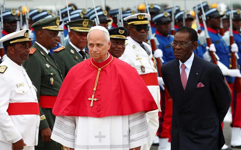 വിമാനത്താവളത്തിലെ സ്വീകരണത്തിന് ശേഷം, മാർപാപ്പ പ്രസിഡന്റിന്റെ കൊട്ടാരത്തിലേക്ക് പോയി. 1979 മുതൽ അധികാരത്തിലിരിക്കുന്ന പ്രസിഡന്റ് തിയോഡോറോ ഒബിയാങ് എൻഗുമ എംബാസോഗോയുമായി പാപ്പ സ്വകാര്യ കൂടിക്കാഴ്ച നടത്തി. തുടർന്ന് പരിശുദ്ധ പിതാവ് രാജ്യത്തെ അധികാരികൾ, സിവിൽ സമൂഹത്തിലെ അംഗങ്ങൾ, നയതന്ത്ര സേന എന്നിവരുമായി കൂടിക്കാഴ്ച നടത്തി. അധികാരികളുമായുള്ള കൂടിക്കാഴ്ചയ്ക്ക് ശേഷം, മലബോയിൽ സാംസ്കാരിക പരിപാടിയില് പാപ്പ സംബന്ധിച്ചു. പാപ്പയുടെ സന്ദർശനത്തിന്റെ ബഹുമാനാർത്ഥം നാമകരണം ചെയ്ത നാഷണൽ യൂണിവേഴ്സിറ്റിയുടെ ലിയോൺ XIV കാമ്പസ് പാപ്പ ഉദ്ഘാടനം ചെയ്തു. ഇക്വറ്റോറിയൽ ഗിനിയിലെ സന്ദര്ശനത്തിന് നാളെ സമാപനമാകും.