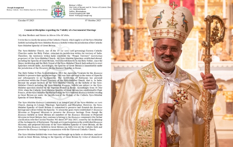 ലണ്ടൻ: ലണ്ടനിലെ 10 ഡൗണിംഗ് സ്ട്രീറ്റിലെ ഓഫീസിൽ ബ്രിട്ടീഷ് പ്രധാനമന്ത്രി കെയ്ർ സ്റ്റാർമർ സംഘടിപ്പിച്ച ക്രിസ്തുമസ് ആഘോഷത്തിൽ സീറോ മലബാർ സഭയുടെ ഗ്രേറ്റ് ബ്രിട്ടൻ രൂപതാധ്യക്ഷൻ മാർ ജോസഫ് സ്രാമ്പിക്കൽ അതിഥിയായി പങ്കെടുത്തു. സ്റ്റാർമറുമായി അദ്ദേഹം കൂടിക്കാഴ്ച നടത്തുകയും ചെയ്തു.